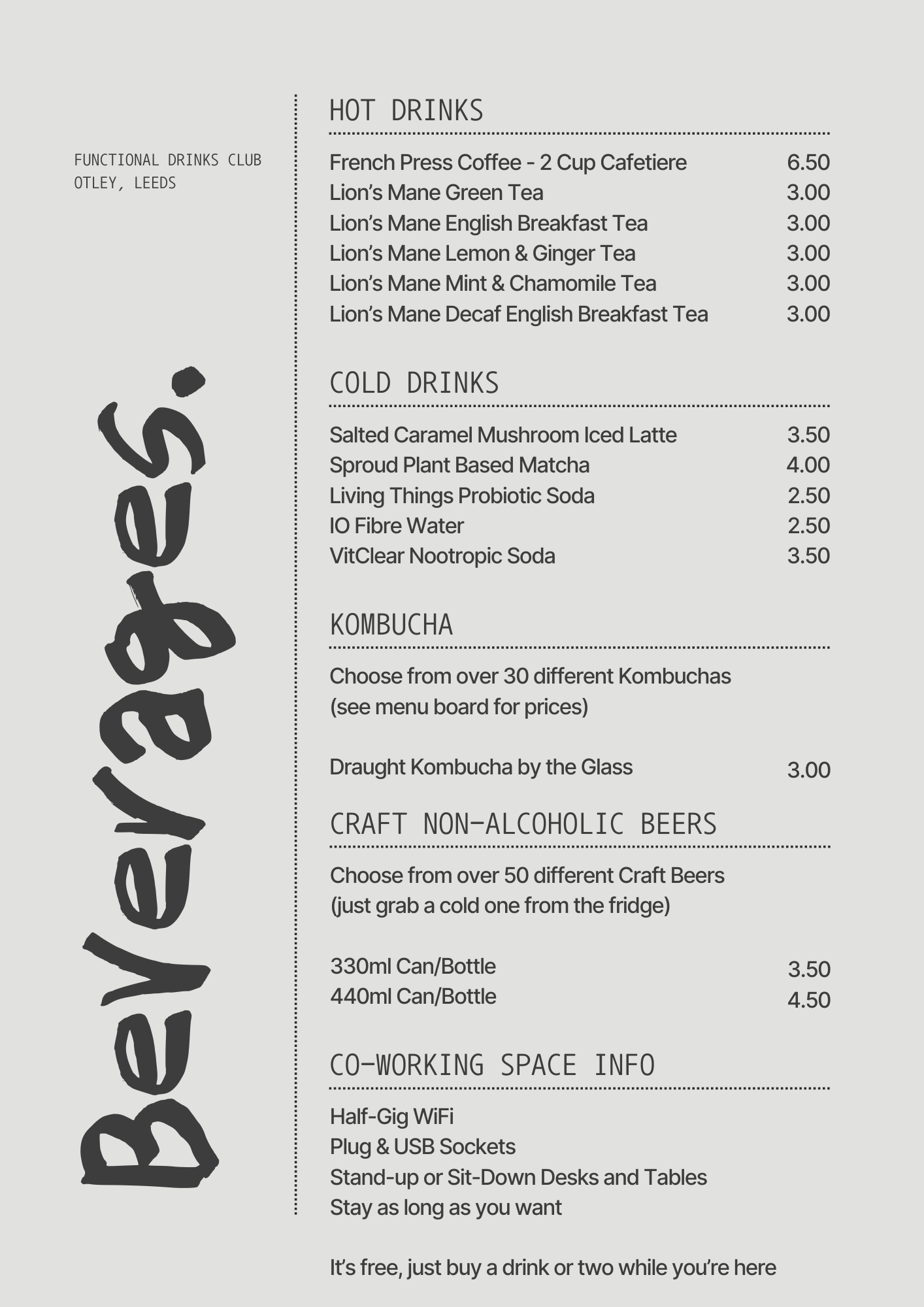 Keep the menu handy or share it round. And remember, you can buy all the Kombucha, non-alcoholic craft beers & wines to take home.